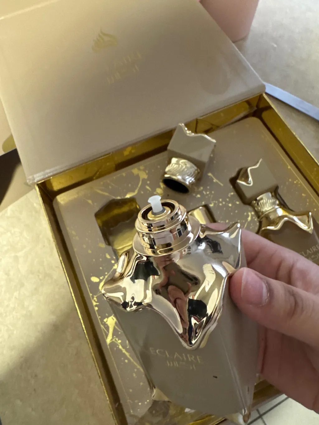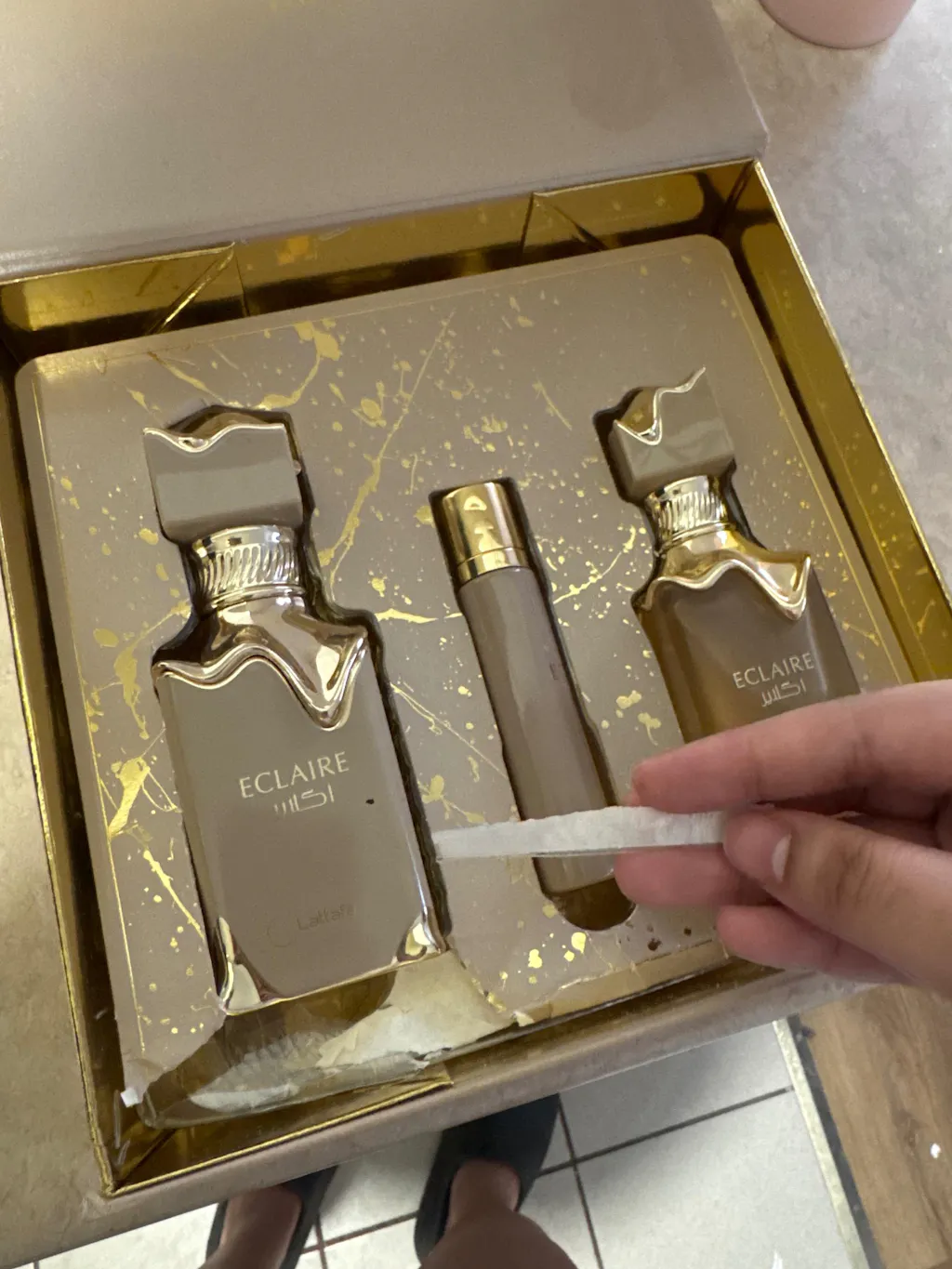 The fragrance opens with the top notes of caramel, milk, and sugar captivate the senses with their rich and creamy sweetness, reminiscent of a decadent confection. In the heart, delicate white flowers intertwine with golden honey, creating a floral and honeyed bouquet. As the fragrance settles, the base notes of vanilla, praline, and musk emerge, wrapping you in a comforting embrace of creamy vanilla, nutty praline, and velvety musk. Gift Set Content: Eau De Parfum – Natural Spray – 100ml//Eau De Parfum – Travel Spray – 12ml//Fresh Hair Mist 50ml//