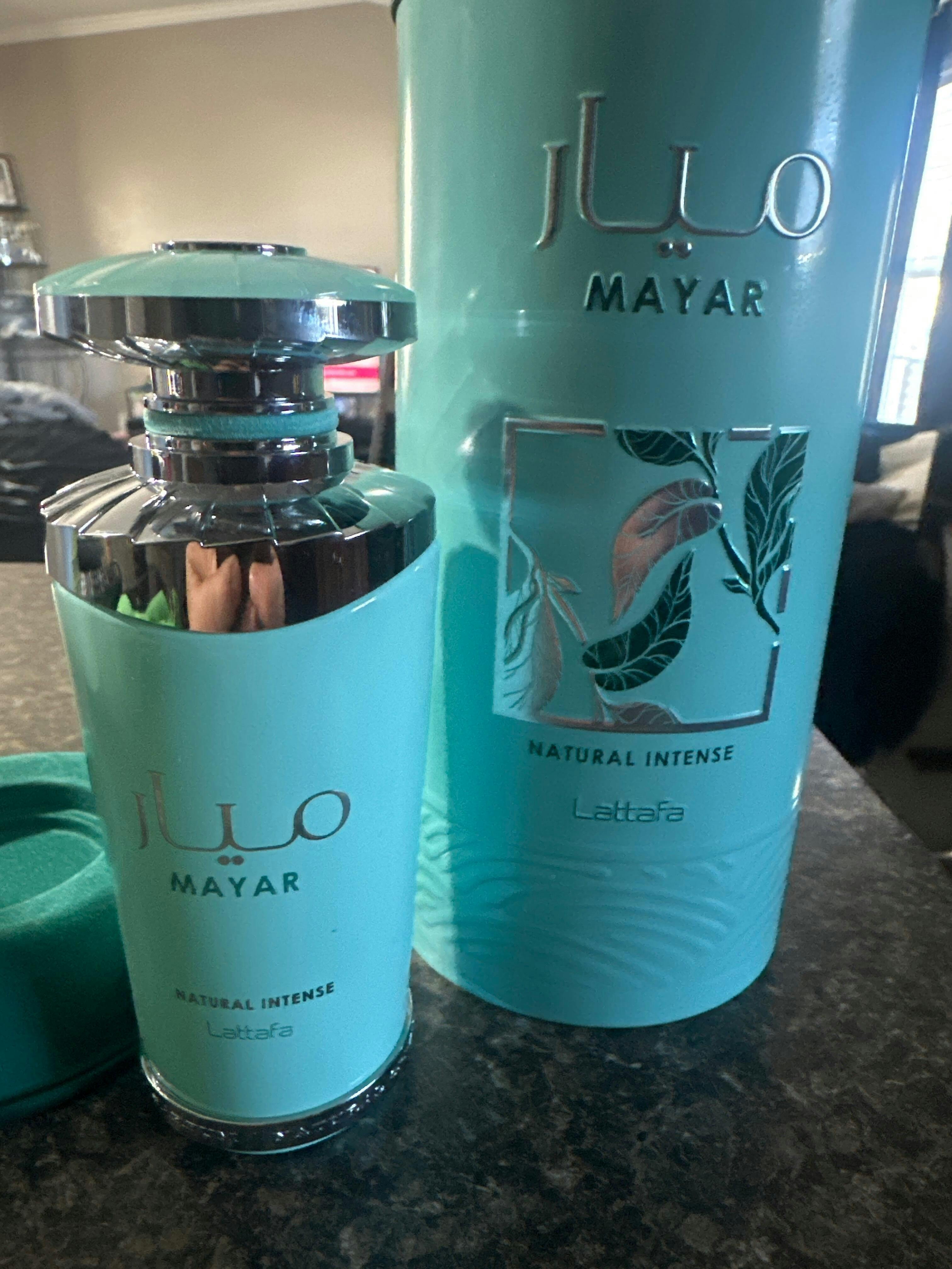 Mayar Natural Intense by Lattafa Perfumes is a fragrance for women. This is a new fragrance. Mayar Natural Intense was launched in 2024. Top notes are Fig, Green Tangerine, Coconut Water and Melon; middle notes are Water Lily, Jasmine and Lotus; base notes are Vanilla, Sandalwood, Ambroxan and Musk.