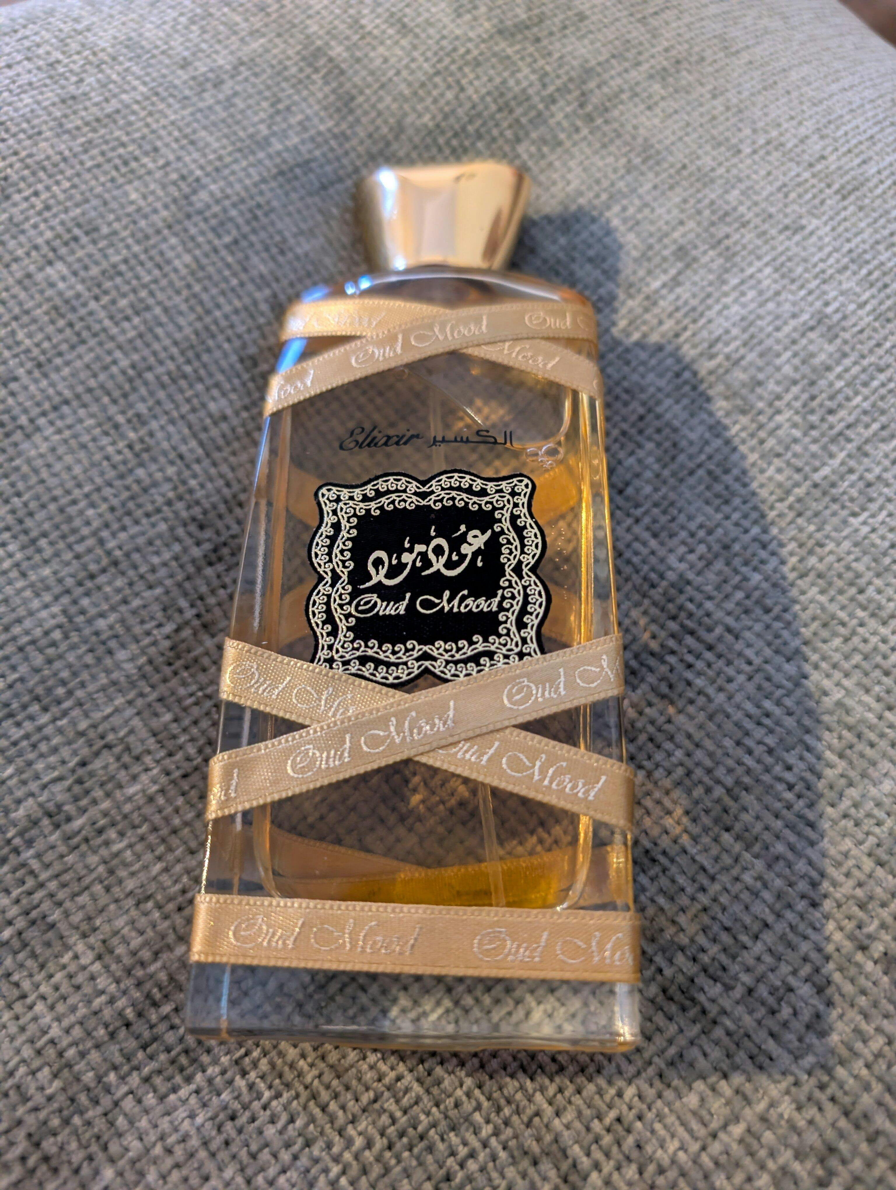 Perfume Oud Mood Elixir Eau de Parfum by Lattafa Perfumes is an oriental fragrance with Oudh, saffron and spices. The top note begins with a spicy appearance of saffron, cinnamon and nutmeg, with nutmeg playing the leading role. Woody notes in the heart note are spread by Oudh and sandalwood, accompanied by suede. The vanilla and amber base completes the perfume calmly and fully. A true oriental perfume, wonderfully spicy and woody with animal and slightly sweet notes! A unisex perfume with a masculine touch.
