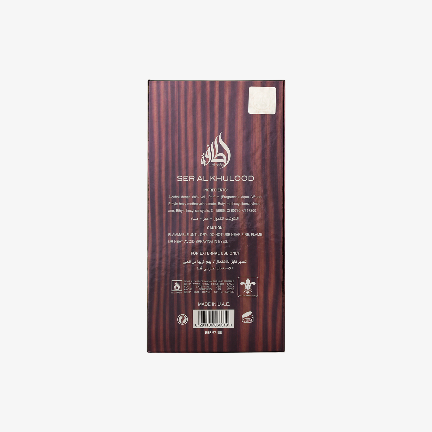 Ser Al Khulood by Lattafa Perfumes is a Oriental Floral fragrance for women and men. Top notes are Big Strawberry and Sugar; middle notes are Tuberose and Jasmine; base notes are Vanilla, Amber and Musk.