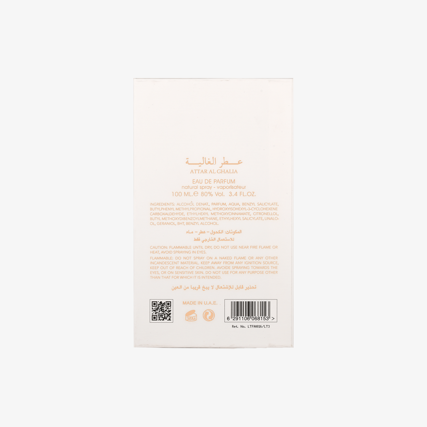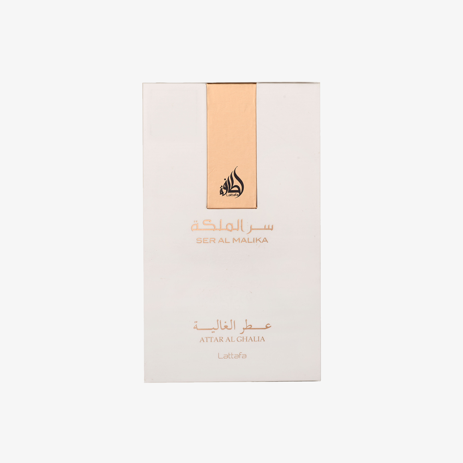 Ser Al Malika Attar Al Ghalia A fine fragrance with a smell of velvety, sensual. The gourmet aroma of baked apple, saffron and cinnamon in the top notes envelops you like a silk salad that lets your bumps flow with the seductive flavors of agar (oud), sandalwood and patchouli from the middle notes and spoils you with the ultimate sensual odors of amber, vanilla and a wood touch of agar (oud). A force of femininity.